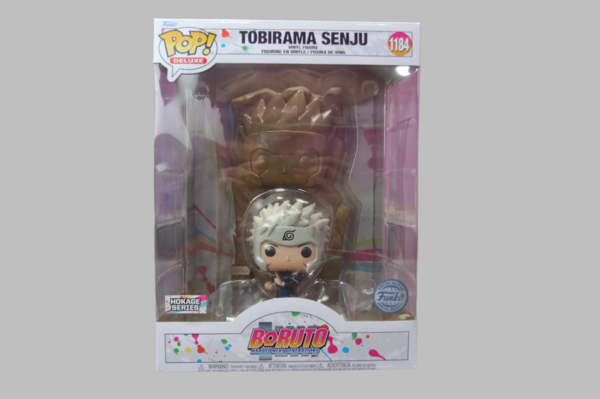 The Tobirama Senju Funko Pop #1184 from Boruto: Naruto Next Generations brings the iconic Second Hokage to life in a unique chibi-inspired design. This figure showcases Tobirama with his signature white hair, sharp, determined facial expression, and his distinctive Hokage cloak, featuring the red flame design along the edges. As a skilled ninja, he is holding a kunai in one hand, representing his mastery over ninjutsu and his fierce combat abilities.